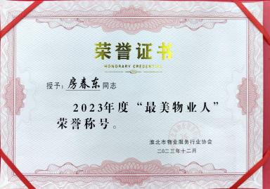 29 12月2023 了解詳情 通皓物業(yè)項目經(jīng)理榮獲"最美物業(yè)人"榮譽稱號 近日,在淮北市物業(yè)協(xié)會一年一度的“最美物業(yè)人”選舉中,通皓物業(yè)東湖家園項目經(jīng)理房春東脫穎而出,榮獲“最美物業(yè)人”榮譽稱號。